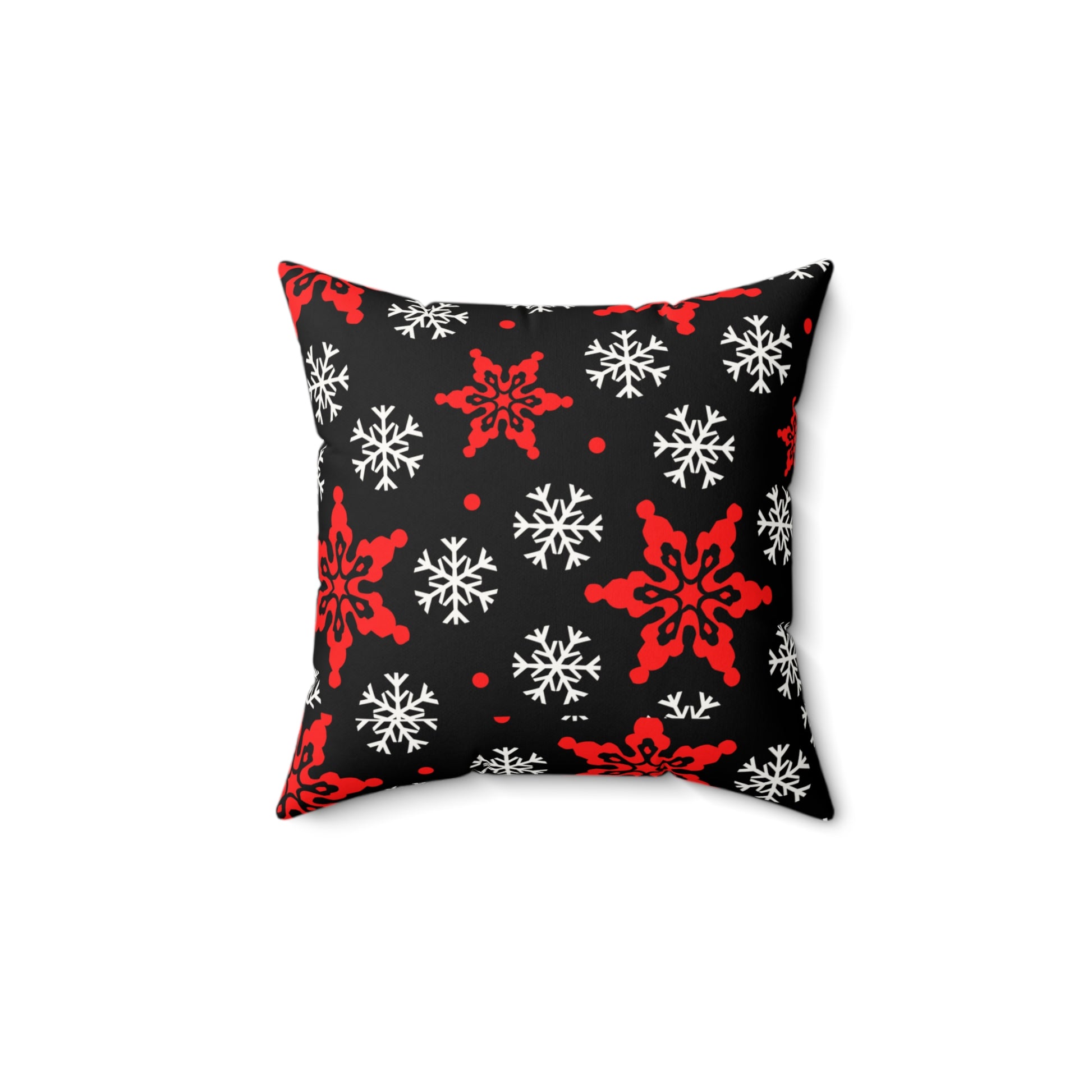 Soft, sculpted comfort with a bold holiday pulse. This faux suede square pillow pairs plush, velvety texture with a striking red-and-white snowflake motif on a deep black field. It adds visual warmth to a living room chair, anchors a layered couch arrangement, or slips onto a bedroom bench to bring seasonal contrast without feeling twee. The double-sided print keeps the pattern consistent from any angle, while the concealed zipper and overstuffed recycled-poly insert create a full, tailored silhouette that ages gracefully with everyday use.